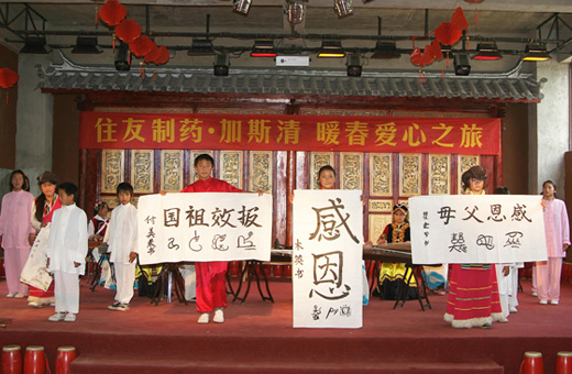 有朋自远方来不亦乐乎”,在这特殊的时期民族孤儿们看见“爱心团”的到来,身怀喜悦心情迎接他们心中亲人爸爸妈妈,民族孤儿们为加斯清® 爱心团真情演绎了《精忠报国》、《我爱爸爸妈妈》等节目,感动了在场的爸爸妈妈。为了让孩子们能够健康成长,我司已捐助了住友制药文库和爱心善款。本次加斯清® 爱心之旅是在云南旱灾的特殊时期举行的爱心接力行动,会一直持续下去,用实际行动为孤儿、为社会做贡献,希望同学们能够学习好、身体好,将来能成为对社会有用的人,也希望孤儿们能在社会各方面的支助下良好地发展。