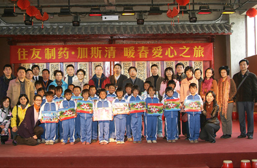 面对着百年一遇的灾情,长期援助民族孤儿的住友制药迅速展开特别行动,于2010年3月26日起紧急启动住友制药加斯清® “暖春爱心之旅” 活动,来自全国各地的百余名医生和住友制药员工组成加斯清® 爱心团,远赴云南向身处重灾区的丽江民族孤儿学校的孤儿,捐赠爱心米及学习用具,帮助孤儿解决学习和生活等方面的困难。