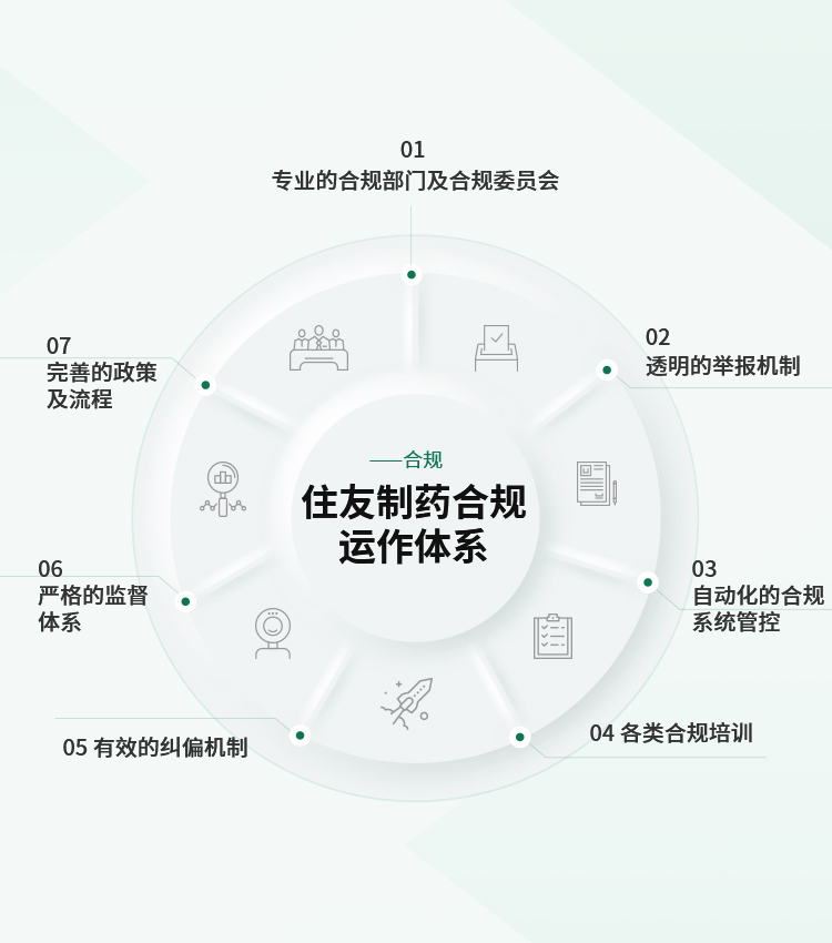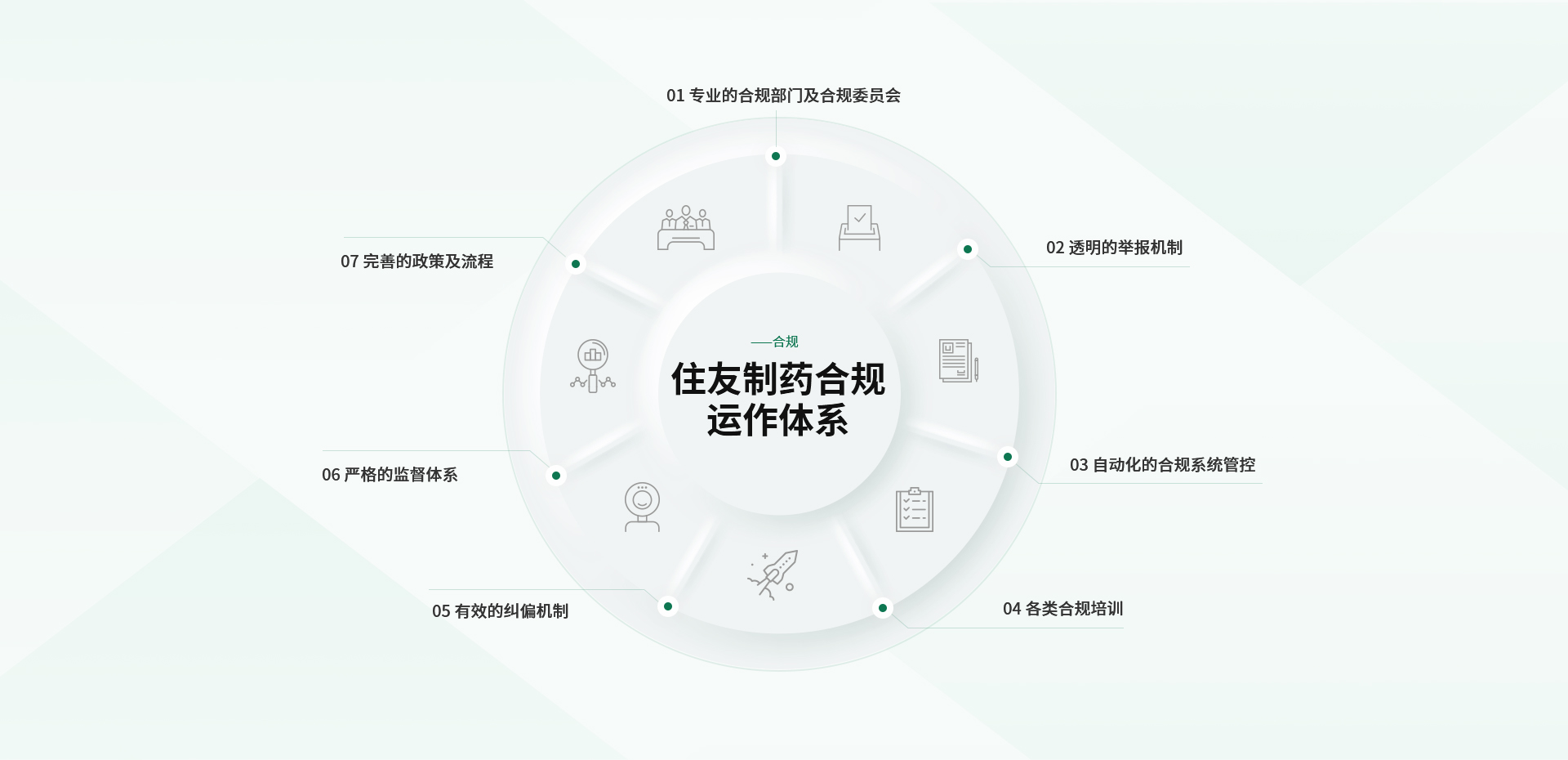 我们将不断审查和完善公司的合规框架,以满足不断变化的合规环境和住友制药的合规要求。