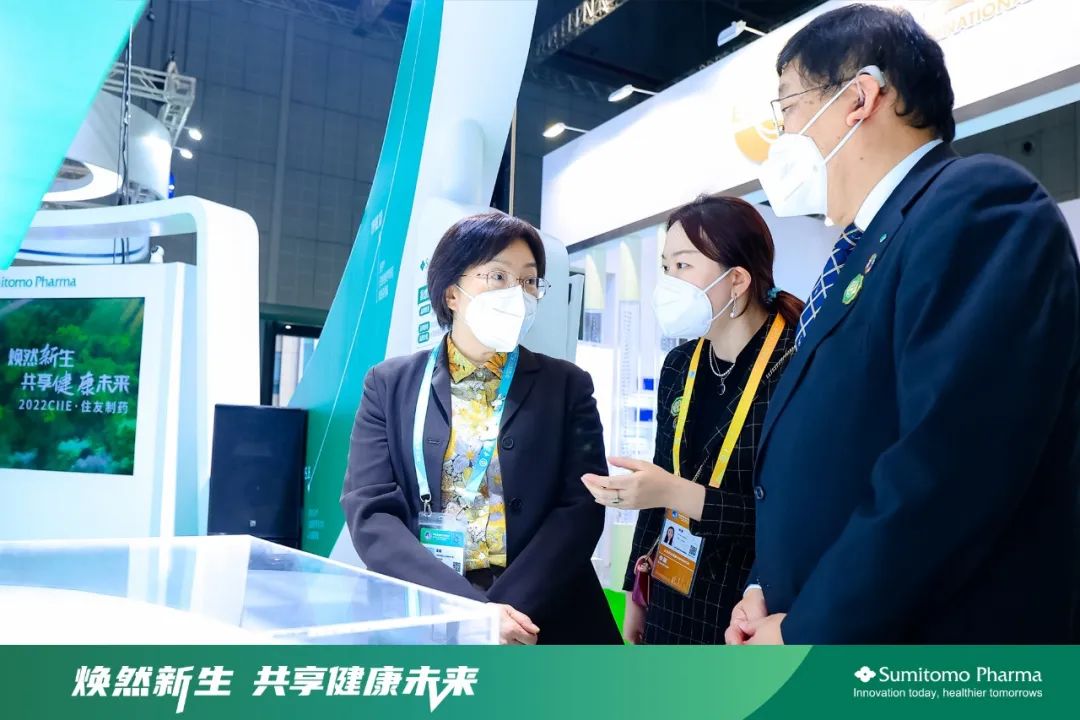 2022年11月7日,第五届中国国际进口博览会(以下简称“进博会”)进入第三天。上海市黄浦区副区长袁园、黄浦区卫健委副主任杨海健莅临走访住友制药展台。