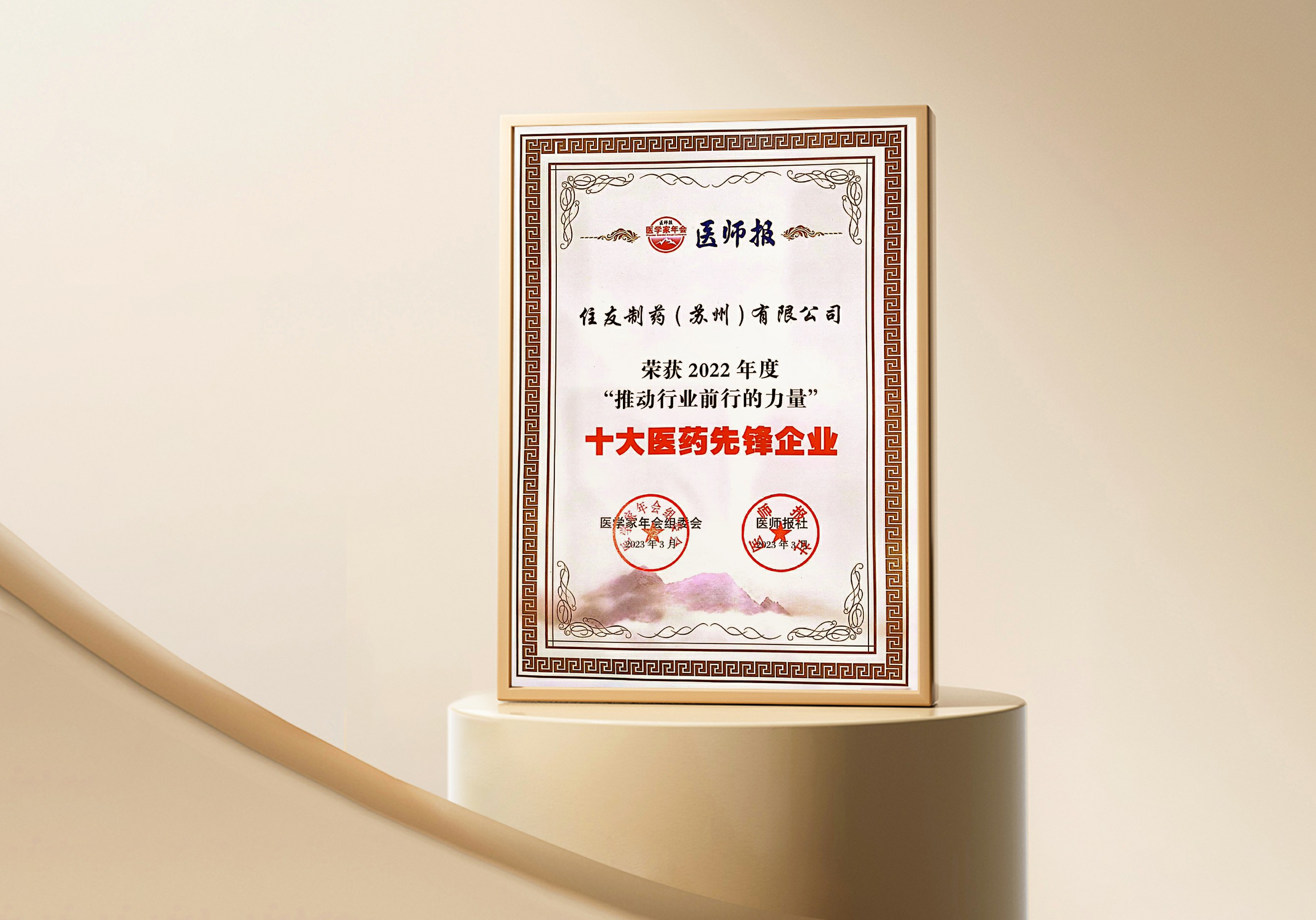 2023年3月24日,在成都锦江宾馆,由医师报社、成都市医师协会、中国医药卫生事业发展基金会、中国医药卫生文化协会联合举办的第八届医学家年会上,住友制药荣获“推动行业前行力量之十大医药先锋企业”的殊荣。