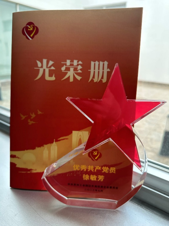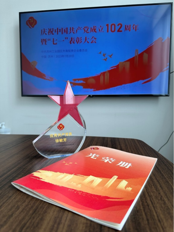 同时,在2023年7月20日中共苏州工业园区外商投资企业委员会举办的庆祝中国共产党成立102周年暨“七一”表彰大会上,住友制药生产本部质量部高级分析师徐敏芳被授予“优秀共产党员”的荣誉称号。