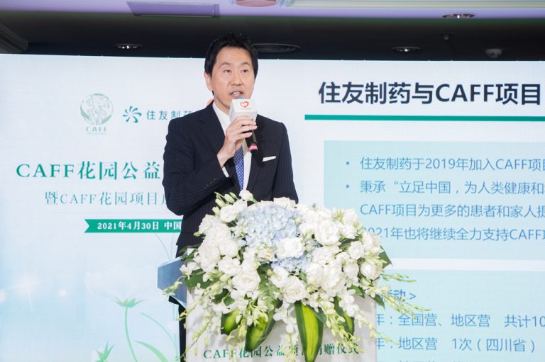 2021年4月30日住友制药CAFF花园(※1)项目捐赠仪式暨CAFF花园项目成立3周年纪念活动在北京举行。北京大学第六医院于欣教授、北京大学第六医院马弘教授、中社社会工作发展基金会赵蓬奇理事长、中社社会心理服务基金吴宇秘书长、北京市海淀区精神卫生防治院李文秀院长、北京市房山区精神卫生保健院张长春院长、联仁健康医疗大数据科技有限公司总经理白永申先生以及住友制药总裁野口直记等约40名相关人士参加了本次会议。这也是公司继2019年首次捐助CAFF花园项目之后再次为该项目提供支持,对项目的实施起到了重要作用。