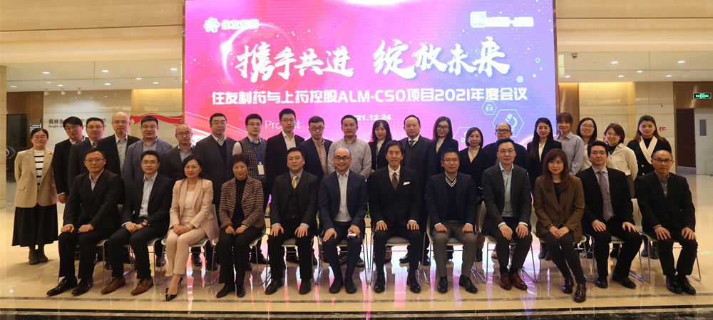 2021年12月24日,住友制药(苏州)有限公司(以下简称:住友制药)携手上药控股有限公司(以下简称:上药控股)召开了“ALM-CSO项目年度会议“,庆祝在双方团队的共同努力下,2021年“阿尔马尔”联合营销项目年度合作规模突破1亿元大关。住友制药总裁野口直记、高级副总裁加味靖博、副总裁薛俊、市场部统括傅楠;上海医药执行董事、副总裁、上药控股总经理李永忠,上药控股副总经理唐鹏程,副总经理张燕,副总经理宋潞潞,助理总经理徐可达等出席了本次大会。