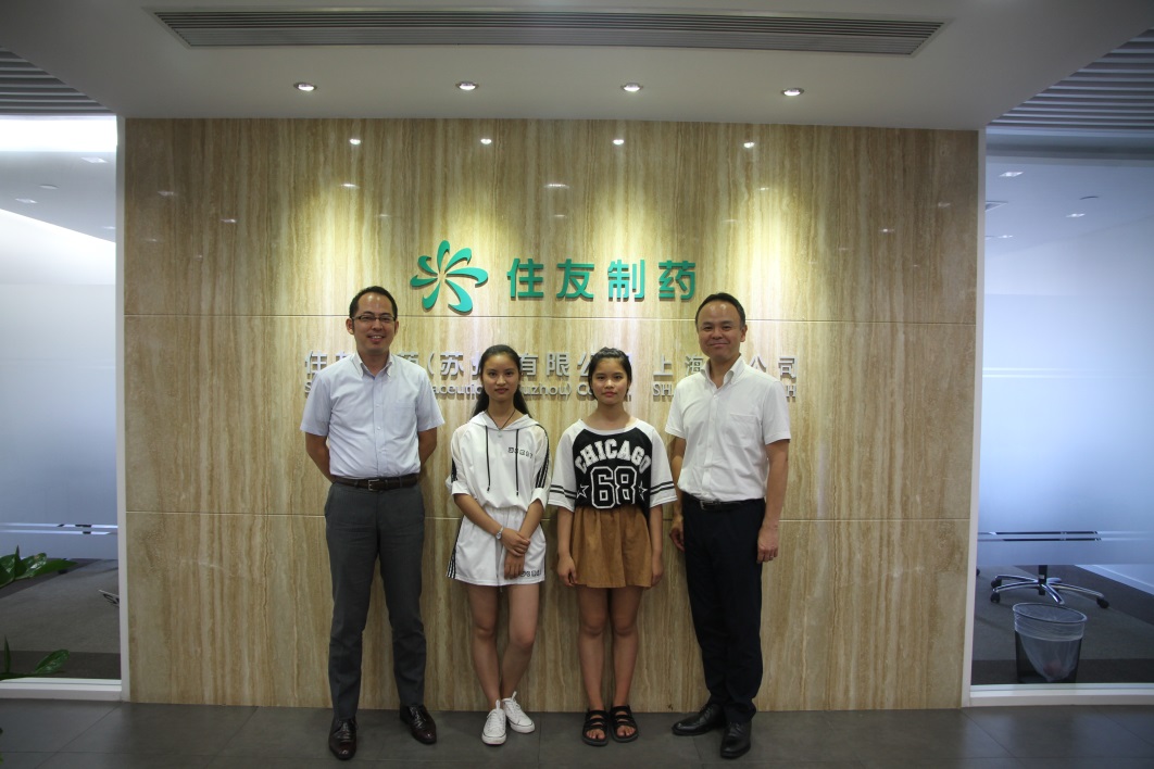 2017年7月17日,受我司邀请广西奈尔泰勒关爱中心的两名学生陈雪平、何英勤两位同学来到了我司上海分公司,开始了为期4天的参观活动。此次是我公司第二次邀请广西奈尔泰勒关爱中心的学生参观上海,感受和体验城市生活。这两位同学作为今年广西奈尔泰勒中心的代表,她们第一次走出现成来到了大城市,这一切都让她们充满了未知和期待,我公司上级副总裁山本昌纪先生迎接慰问了两名学生,让她们感受到了住友制药大家庭的热情。