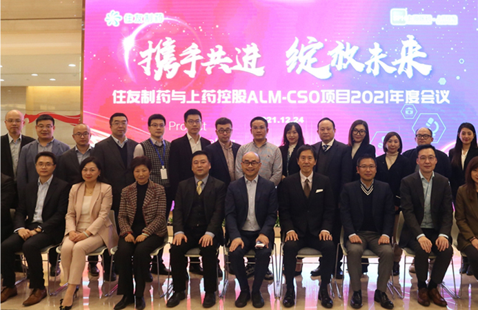 2021年12月24日,住友制药(苏州)有限公司(以下简称:住友制药)携手上药控股有限公司(以下简称:上药控股)召开了“ALM-CSO项目年度会议“,庆祝在双方团队的共同努力下,2021年“阿尔马尔® ”联合营销项目年度合作规模突破1亿元大关。住友制药总裁野口直记、高级副总裁加味靖博、副总裁薛俊、市场部统括傅楠;上海医药执行董事、副总裁、上药控股总经理李永忠,上药控股副总经理唐鹏程,副总经理张燕,副总经理宋潞潞,助理总经理徐可达等出席了本次大会。